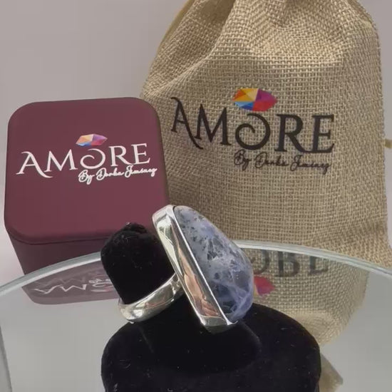 Al ritmo lento del tiempo… nace una elegancia que trasciende lo visible. Este majestuoso anillo de agata negra y azul, montado a mano en plata 925, nace de la naturaleza y florece en tu belleza interior. |