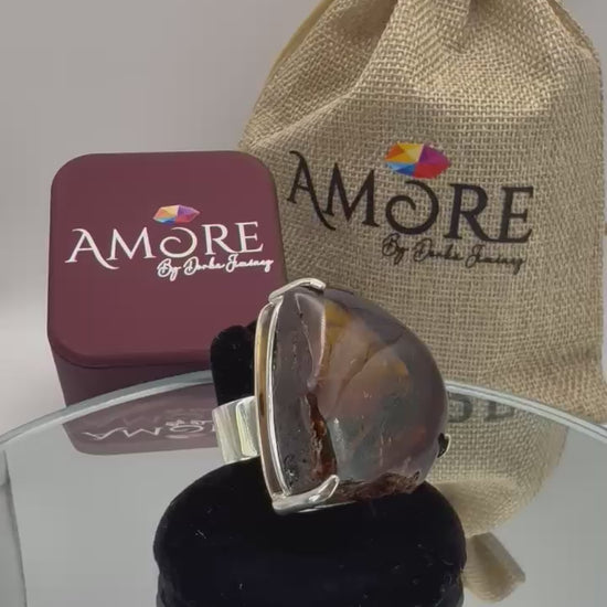 Con el eco de antiguas montañas… brilla la promesa de momentos memorables. Este majestuoso anillo de AMBAR, montado a mano en plata 925, destella en sintonía con tu aura personal. |
