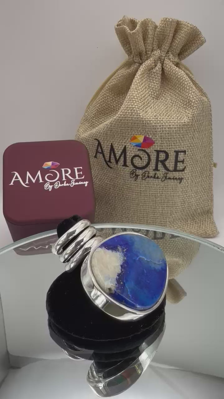 Forjada en el silencio del profundo… despliega un aura de serenidad y misterio en tu esencia. Este majestuoso anillo de LAPISLAZULI madagascar, montado a mano en plata 925, combina tradición artesanal con elegancia atemporal. |