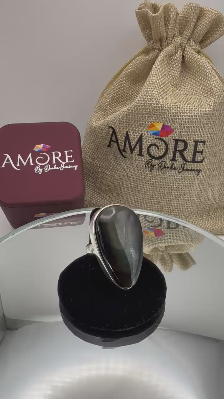 Entre el susurro de la tierra… se refleja tu fuerza interior en cada destello. Este majestuoso anillo de oxidiana dorada, montado a mano en plata 925, brilla con el eco de la naturaleza, celebrando tu fuerza interior. |