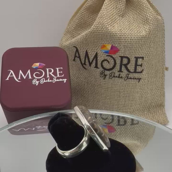 Al ritmo lento del tiempo… nace una elegancia que trasciende lo visible. Este majestuoso anillo de piedra de bufalo blanco, montado a mano en plata 925, transporta un mensaje de belleza y autenticidad en cada faceta. |